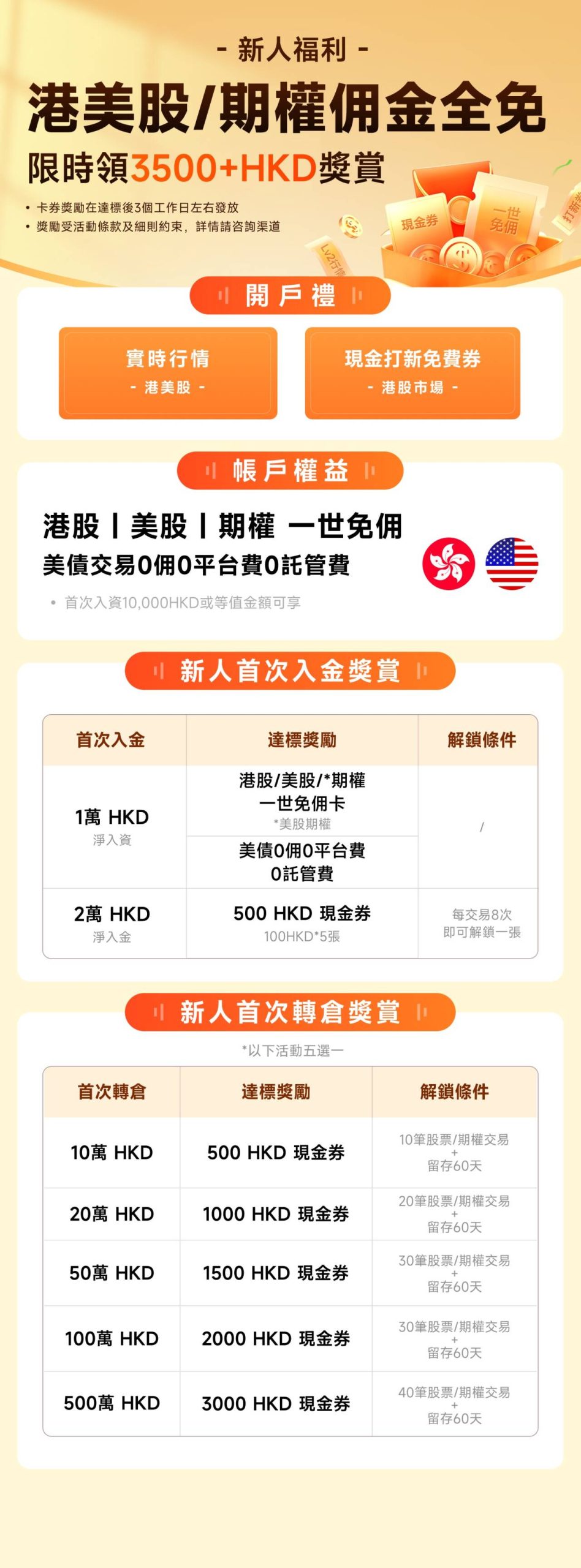 开户成功后 30 日内入金 ≥1 万港币,并留存 60 日。